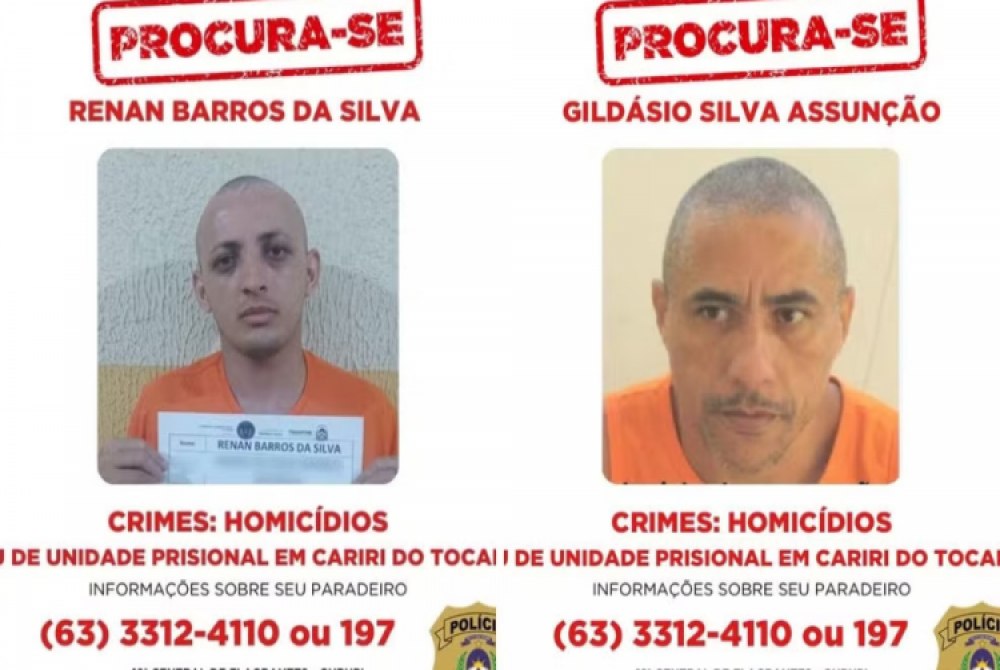 Os foragidos, identificados como Renan Barros da Silva, de 26 anos, e Gildásio Silva Assunção, de 47 anos, são apontados como integrantes da facção Primeiro Comando da Capital (PCC) e cumpriam pena em regime fechado.