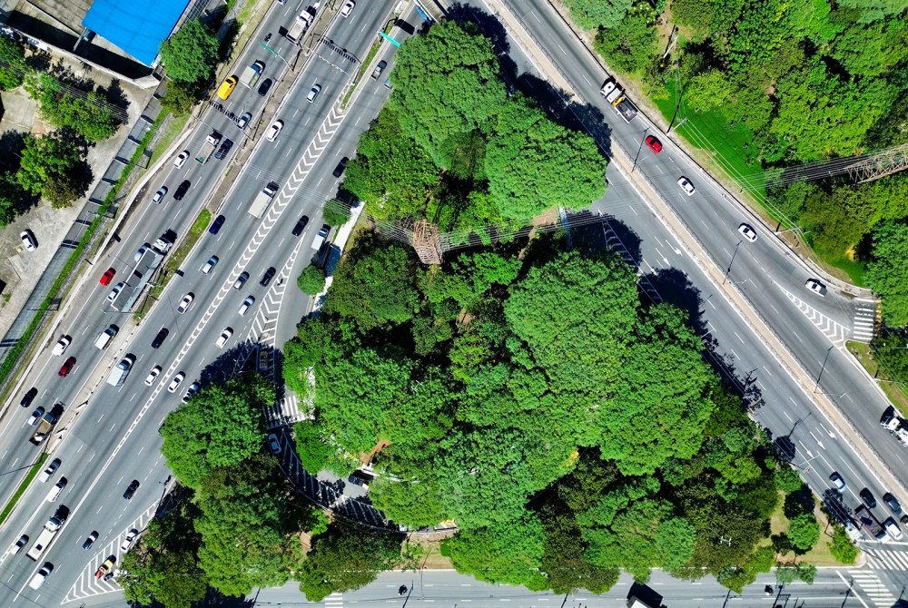 Os bosques urbanos são áreas públicas transformadas em pequenas florestas, com o objetivo de ampliar a permeabilidade do solo, reconstituir habitats naturais, recuperar ecossistemas, aumentar a cobertura vegetal, preservar a flora e a fauna da cidade e contribuir para a melhora da qualidade de vida da população. Esses espaços funcionam como “pulmões” urbanos, auxiliando na redução da poluição do ar ao transformar parte do gás carbônico em oxigênio. O CO? é um dos responsáveis pelo aquecimento global, e a cada sete árvores é possível absorver uma tonelada de carbono nos seus primeiros 20 anos de vida.