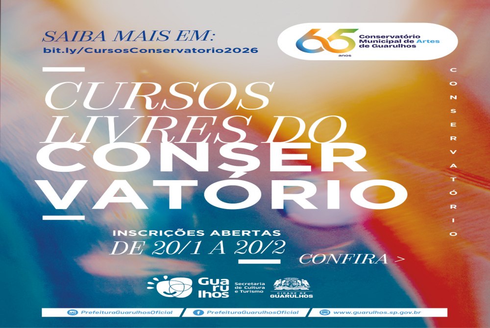 As mais de 20 opções de projetos gratuitos oferecidos pelo Conservatório Municipal de Artes de Guarulhos continuam com inscrições abertas até o próximo dia 20 de fevereiro. Para se inscrever é necessário preencher o formulário disponível no link https://bit.ly/